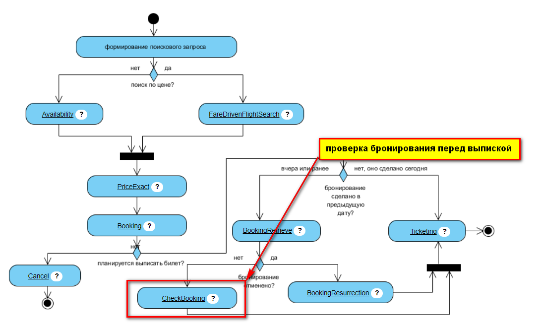 Сервис CheckBooking (Проверка бронирования перед выпиской) — следующий шаг, после BookingRetrieve, в случае, если бронирование подтверждено.